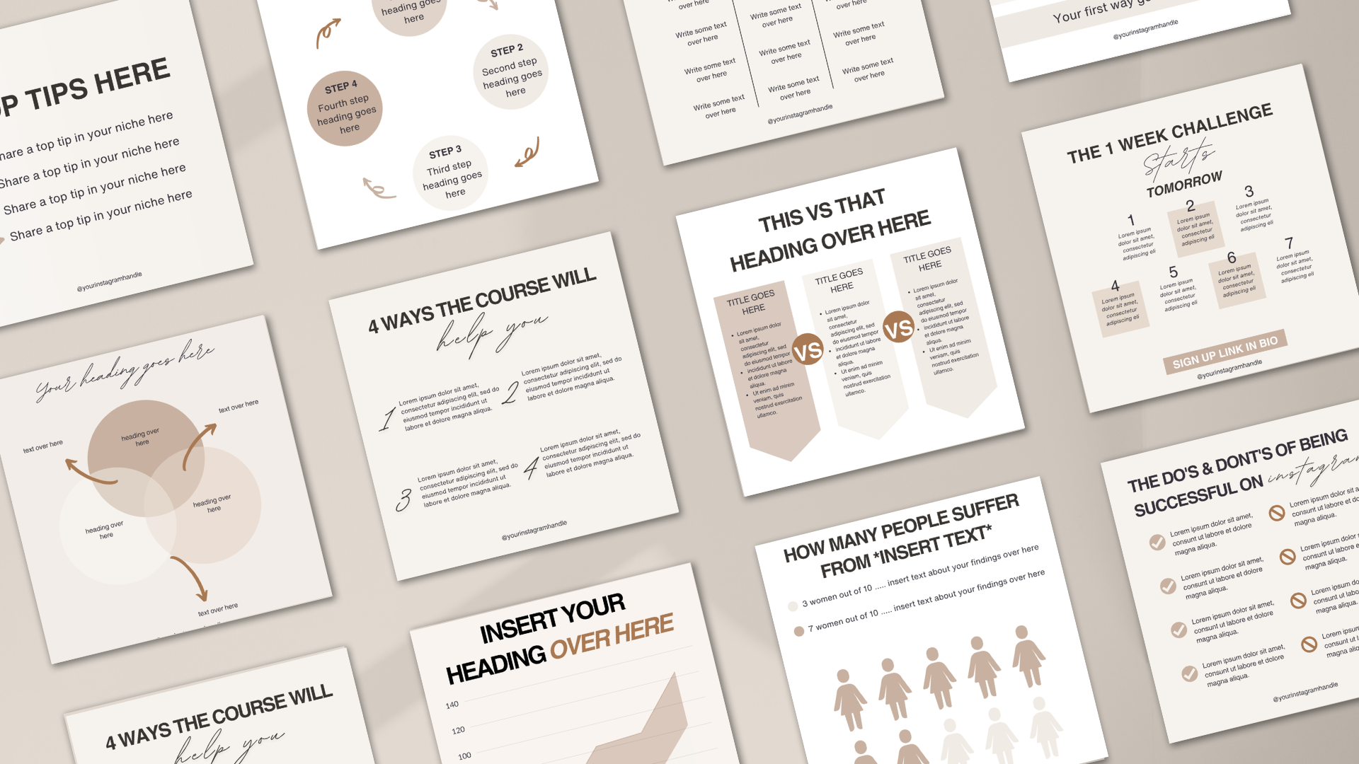 Tired of bland Instagram posts that get lost in the scroll? Say hello to effortless engagement with our collection of 50 beautifully designed infographic and chart templates.