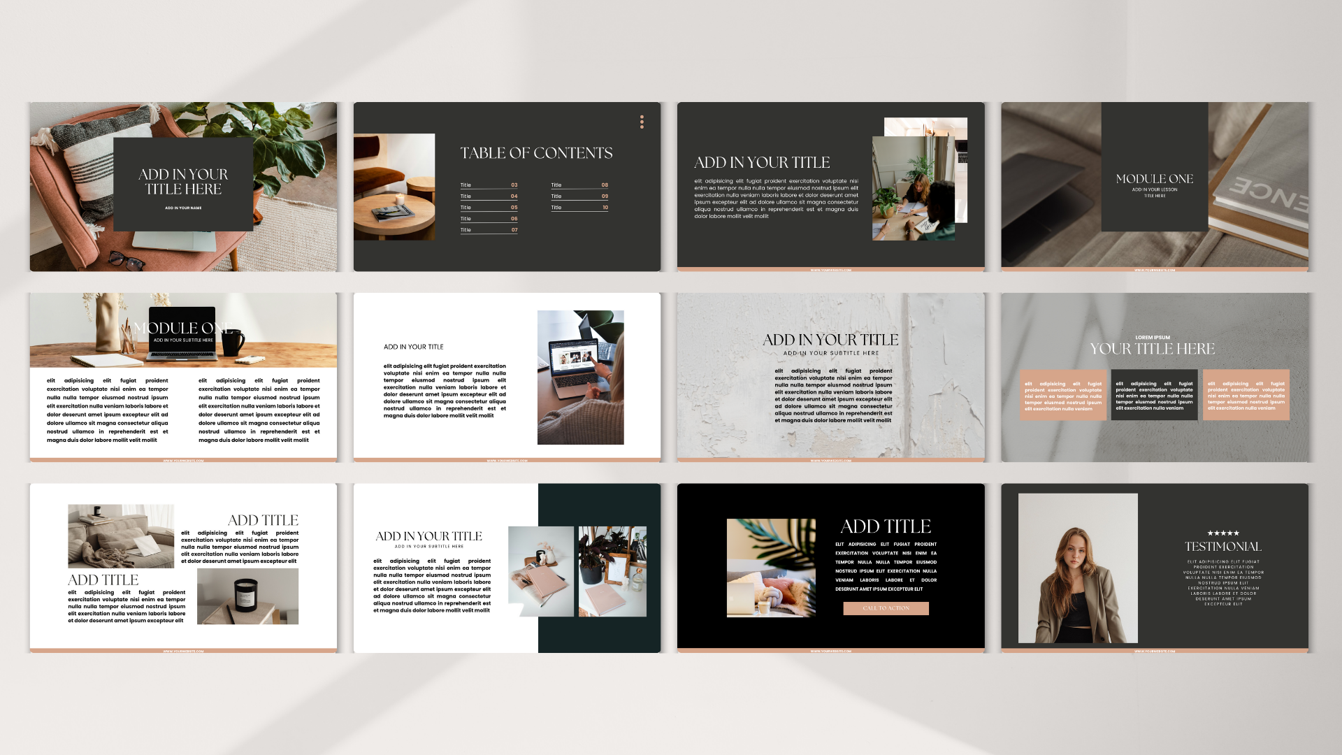 Elevate your presentations with the Modern & Muted template. This 18-page template features a harmonious blend of minimalist design, muted tones, and elegant typography. Perfect for crafting professional presentations, mood boards, or portfolios that exude sophistication and style.
