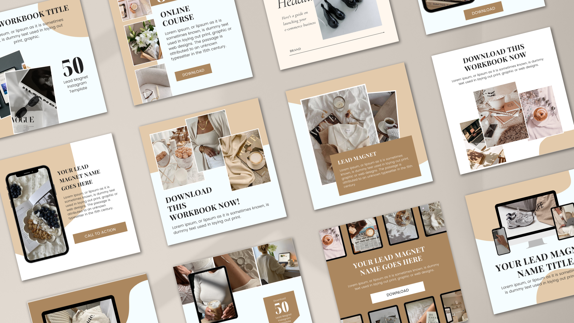Elevate your lead generation game with this pack of 35 minimalist Instagram templates (1080x1350). Featuring clean lines, earthy tones, and persuasive calls-to-action, these designs will help you promote your ebooks, workbooks, and online courses with style.